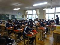 11月25日(水)6校時の学級活動の様子です。最初の4枚は1年生の学年レクです。校外学習でできなかったドッジボール大会を体育館で2・4・5組対抗で行いました。大変盛り上がっていました。明日、1・3・6組が行います。次の2枚は2年生の学級レクの様子です。各クラスで様々なレクが行われていました。最後の2枚は3年生の様子です。3年生は受験までの手続きについて全クラスで進路指導が行われていました。いよいよ入試が近づいていることを感じます。