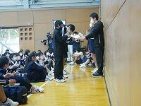 11月24日(火)職員会議の前に東京国税局の方に納税表彰式をしていただきました。式では本校が長年にわたって「税の作文」等を通じて租税教育に貢献してきたことに対して国税庁長官からの感謝状と記念品が贈呈されました。今後も引き続き租税教育の推進を図っていきたいと思います。