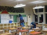 1月26日(火)夜間ですが、3年生の教室でタブレット導入のための充電ボックス設置工事が行われています。昼間は授業がありますので夜間の工事となっています。