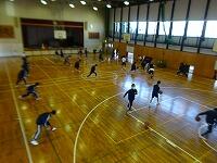 1月29日(金)天気は良くなりましたが、風が強い日です。それでも昼休みや体育の時間は元気にグラウンドで過ごしていました。今日の2年生の体育の様子です。壇上の種目が入れ替わり男子がバスケットボール、女子がソフトボールになりました。今日は男子は体育館でボール回しやドリブル等ボールの扱いについて、女子はグラウンドでグローブの使い方とハンドボールを使ってのバッティングを学習していました。