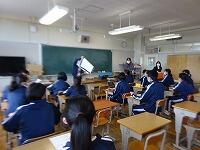 1月27日(水)3年生の3クラスで「三味線体験教室」が行われました。明日28日(木)も残りの3クラスが体験し、最後に学年で鑑賞会を行う予定です。今回も例年お世話になっている杵家会の杵家弥佑様を講師にお迎えしました。三味線の構造や扱い方、所作をご指導いただき、実際に簡単な演奏まで慣れない正座をしながら学習することができました。本年度、体験的な学習が少なくなってしまった3年生にとって大変貴重な機会になりました。明日の鑑賞会も楽しみです。