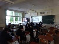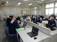 4月21日(水)初の全校委員会が開催されました。当初は全校で集まって各委員会を開催する予定でしたが、まん延防止等重点措置の適用により今回は各学年別に教室を分けてGoogleMeetを活用して各学年を画面でつなぐ委員会となりました。生徒会本部をPC室に置き、3年生の各クラスの委員会で1・2年生の委員会の画面でつながって委員会をおこなっている様子です。