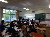 4月26日(月)3年生の音楽と体育の授業の様子です。レベル3においては音楽の授業は工夫なしにはできません。今回も中庭に移動して歌唱指導がされていました。体育も同様に密にならないようにクラスをまたがないように男子はシャトルランと握力測定に分かれ、女子もボール投げと50m走に分かれてスポーツテストを行っていました。