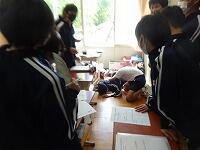 4月26日(火)3年生の家庭科の授業の様子です。消費者トラブルを解決するためにロールプレイングを行っていました。終わった後に各班の代表がその内容を発表していました。卒業後3年経てば成人扱いとなり消費者として様々な問題に直面することになりますので今後は中学校でも消費者教育に力を入れていく必要があります。3年生では公民の中でも悪質商法やクーリングオフ等に学習していきます。