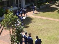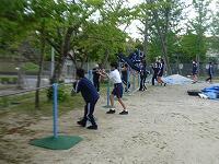 4月27日(火)昼休みの様子です。1年生から3年生まで全力で遊んでいる人もいれば日向ぼっこをしている生徒もいます。ALTのシルバさんも一緒に楽しく過ごしています。鉄棒も人気があります。年度末に整備したので安心して使えます。