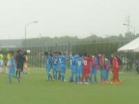 7月27日(火)他の種目は延期になった中、サッカーは実施と決まり、6:45にマイクロバスで市原スポレクパークへ移動しました。雨と風の中でウオーミングアップして試合に臨みました。対戦相手は市川三中です。前半は雨も風も強い中、3点を先取される苦しい展開となりました。後半は2点を返し、最後まで攻め続けましたが、2対3で初戦惜敗となりました。後半のわずかな時間から晴天になりました。もう少しよいコンディションのもとで試合をさせてあげたかったと思います。皆悔しい思いでいっぱいの様子でした。3年生にはまだ高円宮杯があります。1.2年生は新人戦が待っています。今日の悔しさを忘れずに今後の大会等で頑張ってほしいと思います。遠方まで応援ありがとうございました。