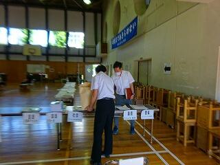 さて、今日は3年生のプリント配布日初日の様子の紹介です。2年生と同じように面談形式で行いますが、3年生はまず各教科の提出物を出すコーナーから始まり、次に配布物を受け取って面談をします。面談の中で名前が未記入のため課題が未提出になっていることを指示された生徒は後方に置かれた名前のない課題に氏名を記入して最後に身体測定を行って下校となります。提出物にはクラス・氏名を必ず記入するようにお願いします。