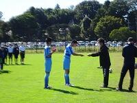 10月25日(日)あけぼの山のサッカー場で柏市中学校新人大会サッカー準決勝が行われ、本校サッカー部は柏中に4対1で勝ち、県大会出場が決まりました。同時に2校が県大会出場のため決勝戦はなく、2校が優勝として表彰され、選手全員にメダルと賞状が贈呈されました。卓球の新人戦を見てから会場に来ましたので、すでにキックオフしており、1対1の状況でした。その後、前半に1点取ってリードして後半になりました。後半で2得点を追加して勝利を確実にする展開でした。それぞれの選手が今日も自分の役割をきちんと果たした結果であったと思います。県大会もぜひそのチームワークで頑張ってほしいと思います。本日も応援ありがとうございました。