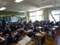11月17日(火)火曜日の1校時は全学年が道徳を行っています。本日は1年生は規律ある社会の実現をテーマに「淳の住む町」を題材に、2年生は社会連帯の在り方をテーマに「加山さんの願い」を題材に授業が行われ、活発な意見交換等がされていました。3年生は前月の修学旅行での学習を受け、安全に配慮し、将来に備えるをテーマに「稲むらの火と堤防」を題材に東日本大震災の津波の被害について考えたことをもとに安全を心掛けて生活することを意識して授業に取り組んでいました。