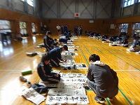 12月17日(木)創心館の床補修が終了しましたので2年生の書道の授業が行われていました。2・3校時の様子です。2年生の書初めは「新年の計画」です。書き終えた後に作品を見ながらどんな新年の計画を描いているのでしょうか。学校の中心となった2年生の新年での活躍を期待します。