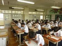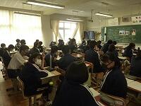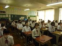 6月24日(木)本日よりテスト返却日まで採点期間となり、特別日課で行います。1校時の3年生は道徳の授業でした。「不揃いでなくちゃあかんのや」という法隆寺や薬師寺の再建・修復に関わった宮大工の生きざまを通じて「我が国の伝統と文化の尊重」について学ぶ時間になりました。写真は3年4組の担任で本校の道徳推進教師である橋本教諭が外部より講師を招聘して授業を展開している様子です。修学旅行に向けてタイムリーな題材だと思いました。なぜ修学旅行に京都・奈良が選ばれたのか、日本の古都で何を学び、感じてほしいのか、考えるよい機会になったと思います。