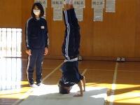 12月4日(金)天気になりました。2年生の体育の様子です。女子は体育館でマット運動を行い、見事に側転や倒立等を決めていました。グラウンドでは男子が2試合場に分かれてサッカーのゲームに取り組んでいました。気温は高くはありませんが、体育館にもグラウンドにも元気な歓声が響いていて体育に楽しんで参加しています。