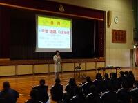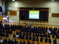12月9日(水)6校時は学級活動です。3年生では実力テストの返却と個人面談が行われていました。いよいよ進路本番が近づいています。2年生は学級会を行っていました。学期の反省や学期末の学年レクのチーム分け等、クラスで様々な話し合い等が行われていました。1年生は体育館で林間学校の予察報告集会がありました。来年6月を楽しみに熱心に映像を見て、内容の説明を聞いていました。