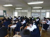 4月13日(火)本日は全学年一日かけて柏市学力・学習状況調査を実施しています。1年生にとっては中学校での初のテストとなりました。校内テストの約束の説明を受けてから取り組んでいる1年生全クラスの様子です。本校ではテストは原則、制服で行うようにしています。明日は、一年生はスポーツテストがあります。全学年で証明写真撮影を行う予定です。