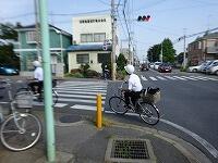 6月9日(火)自転車通学者の朝の登校の様子です。今回は山長さんお店の角を左に曲がって学校へ向かう様子を撮りました。左に曲がる車も多いので巻き込みの危険性があります。交差点なので右折してくる大型車も多い所ですのでここも前回のスーパー前の横断と同じようにかなりの注意を要する場所であると思います。今後も学校では交通安全指導を継続してまりますが、ご家庭でもご指導よろしくお願いいたします。