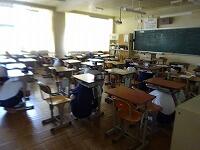 6月9日(火)帰りの会で行われた避難訓練の様子です。まず担任から避難方法や経路等について説明の後、「関東地方に震度6強の地震発生」の放送があり、一次避難の指示が出されました。3年1・2組の生徒が素早く机の下に潜る姿を見せてもらいました。「揺れがおさまった」との放送で本来なら2次避難となりますが、感染リスク低減のためグラウンドへの整列や集合の訓練は今回は行いませんでした。担任より地区別に集合する際の説明等を受けて本日は終了、下校となりました。明日は分散Bグループに対して同じ訓練を実施します。