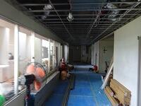 7月8日(水)特別棟の足場が撤去されました。あとは一階の事務室・保健室の工事と2階の会議室・放送室の工事が終わると校内もすっきりします。写真は現在の、特別棟の一階の様子です。ここが終われば通常の玄関からすぐの階段を利用して職員室へ進むことができますのでもうしばらくお待ちください。