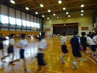 7月10日(金)天気の判断が難しい朝でしたので体育館で朝の体力づくりを実施しました。内容は10分間ランニングと10分間の筋トレです。短い時間ですが、参加者は一生懸命に取り組んでいました。