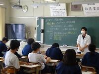 10月14日(水)1年生の家庭科の授業の様子です。住生活の「共に住まう」という内容で自分・妹・両親・祖母の5人家族で住む場合にどのように部屋を分けて使うと暮らしやすいか、グループで話し合った結果を発表していました。