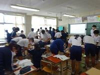 10月13日(火)今月の30日は校内授業研究が行われ、教育委員会や他校より講師を招いて研究授業が行われますので今回は本校の社会科の授業の紹介です。3年生では公民分野の経済活動について、1年生では地理分野でヨーロッパについて、2年生では地理分野で九州地方についての授業が行われていました。社会科は知識として覚えることが多くて苦手だったという方もいらっしゃると思いますが、今、行われている授業では習得した知識を活用することに重きが置かれています。どの授業でも本日の課題や授業のまとめを自分で考えて表現するために既習事項を活用しています。また、周囲の人と班等を越えて質問したり、相談したりして課題を解決していく取り組みが日々行われています。