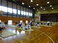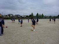 10月12日(月)5校時の3年生の体育の様子です。男子は体育館でマット運動が始まりました。体をほぐしてから順番に難易度をあげる授業が行われていました。女子はサッカーを始めるためにグラウンドでチーム決めをした後、ボールの基礎的な扱い方を練習していました。