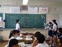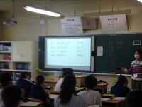 今月の校内研修に向けて、今回は国語の授業の紹介です。一段目の写真は3年生の国語の授業です。授業の開始時には漢字の読み書きや熟語の学習をしています。現在は現代文の読解に取り組んでいます。二段目は2年生の国語の授業です。現在は近代短歌について学習しています。よく発表していました。三段目は1年生の国語の授業です。授業の開始時に辞書の早引きを行っています。素早く引いて手を挙げる人が多く、辞書の扱いに慣れてきているようです。現在は「竹取物語」や「オツベルと象」を題材に授業が行われています。どの学年も言語能力の向上を図る取り組みが日々行われています。その力が他の教科にも大きく関わると思います。