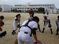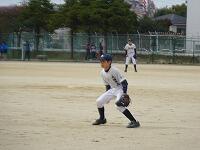 11月1日(日)本校のグラウンドが野球の1年生大会の予選ブロック会場となりました。本校野球部1年生の塙選手が1名で沼南連合(大津・風早・二松學舍・手賀)に出場し、セカンドとして守備、攻撃、走塁で大活躍し、連合チームに貢献しました。