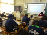 2月2日(火)2年生の理科の様子です。自分が中学校時代に学習したと同じように気象通報を聴いて天気図に天気、風向き、風力等を記入する作業をしていました。とても懐かしく思いましたので撮りました。保護者の皆様も同じよう学習されたのではないでしょうか。昔と違うのはラジオで気象通報を聴くのではなく、PCを通して聴いているところでした。気象図で季節を予想する授業も行われていました。柏市には気象大学校があります。将来、気象予報士を目指す人がでてくるかもしれません。
