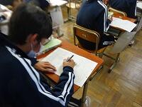 2月1日(月)公立高校出願書類のとりまとめのため昼休みに下校した3年生の様子です。このように下校していったのですが、現在、各クラスで2,3名が願書の記入漏れや不備により再登校してきています。今日中に無事に全員の願書に校長印を押すため校長室で待機しているところです。明日、公立高校に出願する生徒に出願書類一式を手渡す予定になっています。