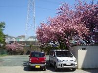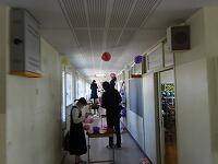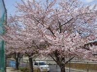 4月9日(金)良い天気です。全学年がそろいました。校舎裏手の駐輪場付近では八重桜が満開です。校内では3年生の発育測定が体育館で、聴力検査が図書室で行われていました。本日から給食開始、避難訓練も行われます。