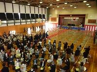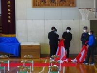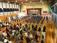 4月5日(月)雨の始業式となりました。本校は新学期準備のため午後より始業式(着任式を含む)を行いました。式では生徒会長の話、生徒指導主任の話、校長の話と職員紹介がありました。2・3年が初めて椅子を入れて集まった式でしたが、大変集中して静かな式となり着任された先生方への温かい拍手もありました。その後、3年生が先に退場し、2年生は残ってクラス発表をしてから移動している様子です。いよいよ新学期の開始となります。新学期の教育活動へのご理解とご協力をお願いいたします。