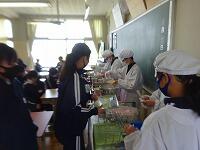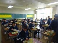 4月9日(金)1年生の給食の様子です。全校で本日より開始です。スタートのメニューは「和風ミートソース(スパゲティ)」でした。さすがに小学校で経験しているので手際よく配膳し、黙食していました。今日のミートソースもサラダも新メニューだと思いました。「おいしい」との評価でしたので次のメニューも楽しみに給食の時間を過ごしてほしいと思います。