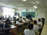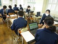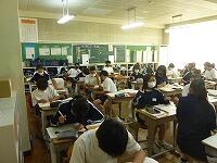 7月14日(水)天気が不安定な様子ですが、本日も平常授業が行われています。学期末で残り授業も少なくなり、夏休みの宿題についての説明や実際に宿題に取り組む授業も見られます。2年理科では図書室で自由研究のテーマ探しを行っていました。2年英語ではタブレットでALTのシルバ先生が作成した学習シートが紹介されていました。1年国語では課題作文について説明があり、下書きを始めている生徒もいました。2年社会でも夏休みの課題レポートの説明が配付され、紙又はタブレットでレポートを作成してよいことが連絡されたいました。