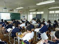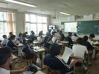 7月15日(木)1校時の3年生の道徳の様子です。今日は4クラスで「栄冠は君に輝く」を題材にして授業が行われていました。現在、高校野球の地区予選の熱闘が毎日報道され、夏の甲子園を目指して卒業生も頑張っています。総合体育大会もこの土日は野球、サッカー、剣道、バドミントン、テニスが予定されていますのでタイムリーな内容だと思います。授業では教材や映像、楽曲を通じて希望と勇気,克己と強い意志等について考え、意見交換がされていました。3年生にとって最後の夏、どの生徒にも「栄冠は”君”に輝く」まさにそのものだと思います。3年生の健闘を祈ります。