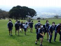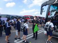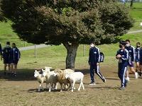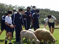 10月2日(金)2年生は林間学校の代替としてマザー牧場にバスで行きました。晴天で房総半島の山並みが良く見える最高のロケーションでした。その中で体験学習として1・5組はひつじコース、2・3組は乳牛コース、4組は肉牛コースを体験しました。写真はひつじコースの様子です。飼育の概要説明を聞いた後、牧羊犬と同じように羊を追い込む体験や毛刈りの方法を聞いたり、犬笛を吹いたりという畜産体験を午前中行った後、レストランでジンギスカンを食べました。食後は班別行動でソフトクリームや豚まん等を食べたり、動物とのふれ合いやショーを楽しんだりしていました。また、遊園地で遊んだり、ゲームで景品を獲得したりしている班もありました。最後は買い物をしたり、ソフトクリームを食べて終了する班が多かったようです。バスに乗る際や牧場への入場、レストランの入退場等、消毒が徹底されていました。帰る際も検温してからバスに乗車して学校へ無事に戻ることができました。