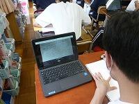 7月6日(火)3年生の数学の様子です。タブレット活用に熱心に取り組んでいました。今日の課題は「振り返りシートづくりとみんなの問題を解く」です。授業の振り返りは紙のシートで以前は行っていましたが、今日はタブレットに自己評価を打ち込んでいました。その作業が終わった人はクラスメートが作成してタブレットで取り込んだ問題を画面を見て解いていました。