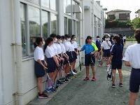 6月15日(月)部活動が再開しました。最初の30分間は1年生の仮入部です。説明や指導を2・3年生が行っていました。仮入部の後に2.3年生が1時間ほど活動して下校となりました。テニスコート、グラウンド、体育館、武道場、校内でミーティングや練習場所の整備等を行い、活動を開始しました。大変生き生きとした表情でこの日を待っていたことがよくわかりました。よい汗をかいてほしいと思います。