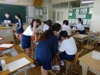 7月1日(水)本日の6時間目は学級活動です。3年生は年間の学習計画づくり、2年生は学級裁量で学級会や班活動をしていました。1年生は学年で統一して学級レクを班対抗で2種目、得点を競い合っていました。レクの内容はパズルや絵を描いてあててもらうという単純なものでしたが、どのクラスも大変盛り上がっていて楽しい時間を過ごしていました。