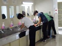 7月1日(水)15:00から保護者の皆様にご協力をお願いした清掃・消毒ボランティア活動の初日の様子です。PTA会長さんをはじめとして7名の保護者の方にトイレの清掃・消毒をしていただきました。副担の職員は流しを中心に清掃・消毒ができましたので大変助かりました。蒸し暑い中、本当にありがとうございました。ボランティアの皆様、これから1カ月間よろしくお願いいたします。
