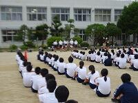 7月2日(木)久しぶりの晴天です。昼休みは沢山の生徒がグラウンドで遊んでいました。その中で明日、学年レクで長縄を行う1年生の各クラスが集まって練習していました。明日は練習の成果が発揮できるでしょうか。楽しみです。3年生は明日は実力テストがあります。1.2年生の復習が範囲です。この結果をもとに三者面談を行いますので頑張ってほしいと思います。