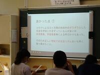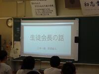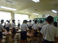8月7日(金)1学期の再開後は感染による休校もなく、本日無事に終業式となりました。保護者の皆様のご協力に感謝申し上げます。引き続き夏季休業中も感染症対策や健康観察をお願いいたします。さて、本日の終業式ですが、教室でムービーを使って行いました。1年、2年、3年の各学年委員長の話、生徒会長の話、生徒指導主任の話、校長の話を事前に作成して教室で映すという形式です。どのクラスも静かに聞いていました。本来は式は制服ですが、今日は体操服で過ごしてもらいます。