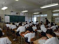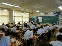 8月25日(火)1学期確認テストが行われています。中学校初のテストを受ける1年生の様子です。静寂の中にも緊張感が感じられ、一生懸命に取り組んでいます。