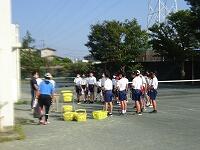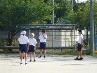 8月6日(木)今日も暑い一日となりました。その中でも最後の昼休みをグラウンドで楽しんでいる生徒達がいます。熱中症が心配されますので担任の先生も一緒に入って遊んでいました。午後の授業も部活動も熱中症に十分に注意していきます。昨日も顧問の先生が来るまでは体育館や創心館、グラウンドの部活動は日陰や涼しい場所で待機していました。練習内容と水分補給に留意して午後の活動を進めます。