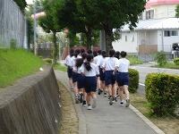 8月4日(火)朝7:00頃の登校の様子です。梅雨明けとともに日ざしが強くなってきました。登下校等での帽子や日傘使用のご連絡をすでに行いました。今日も朝から暑い一日の開始です。帽子をかぶって登校する姿を見ることができました。朝の部活動は本日から開始ですが7:20開始ですので7:00前に登校することがないようにお願いいたします。