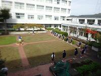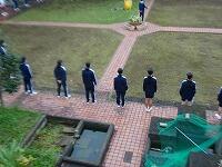 10月23日(金)1時間目からきれいな歌声が響いてきました。昨日のリハーサルをうけて2年生が中庭で合唱をしていました。上からのぞいて聴いていると池の亀も浮上してきて喜んで聴いているように見えました。