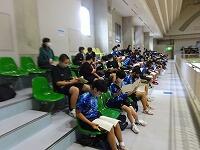 10月22日(木)職員室に歌声が響いてきました。中庭で音楽科の永井教諭のハーモニカにあわせて大きく広がった1年生が合唱の練習に取り組んでいました。本日は2学年のリハーサルが行われます。