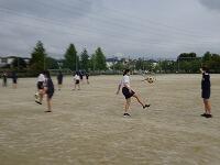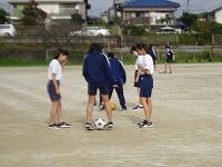 10月12日(月)5校時の3年生の体育の様子です。男子は体育館でマット運動が始まりました。体をほぐしてから順番に難易度をあげる授業が行われていました。女子はサッカーを始めるためにグラウンドでチーム決めをした後、ボールの基礎的な扱い方を練習していました。