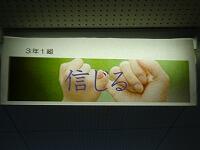 10月14日(水)3年生の2階の廊下の蛍光灯に各クラスの合唱曲を示すカバーがつきました。3年副担任橋本教諭の製作したものです。最後の輝沼祭の合唱に向けて思いっきり歌ってほしいという願いが込められていると思います。各クラス前の蛍光灯についていますのでぜひ励みにして3年生としての合唱をつくりあげてほしいと願います。