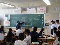 10月13日(火)今月の30日は校内授業研究が行われ、教育委員会や他校より講師を招いて研究授業が行われますので今回は本校の社会科の授業の紹介です。3年生では公民分野の経済活動について、1年生では地理分野でヨーロッパについて、2年生では地理分野で九州地方についての授業が行われていました。社会科は知識として覚えることが多くて苦手だったという方もいらっしゃると思いますが、今、行われている授業では習得した知識を活用することに重きが置かれています。どの授業でも本日の課題や授業のまとめを自分で考えて表現するために既習事項を活用しています。また、周囲の人と班等を越えて質問したり、相談したりして課題を解決していく取り組みが日々行われています。