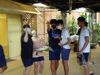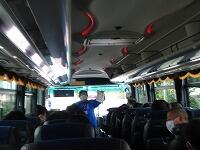 10月16日(金)3年生の修学旅行代替行事が無事に終了しました。6時に登校し、6:30に出発、行きも帰りも途中休憩は友部SAのみで現地へ直行。1・2・3組は薄磯地区で語り部さんから震災講話を受け、4・5・6組は久之浜地区で語り部さんからの震災講話やふれあい会館の防災センターの見学を行いました。写真は6組が語り部さんの案内でバスの中や街の中、ふれあい会館で震災当時の体験を聞かせていただいた様子です。誰一人おしゃべりすることなく、真剣に聞いていました。その後、ハワイアンズに移動。入り口やレストランで消毒・検温をし入場、バイキングもビニール手袋着用で各自が料理を選ぶ等、感染症対策は徹底されていました。3月の休校前以来の会食の形式に生徒達は喜んでいました。食後は着替えて宝探しの説明を受けました。宝探しは難易度の高いゲームでスマホの機能を使いながら問題を解いて進まなければならず、班で協働して取り組むには最適にゲームでした。多くの班が苦戦していましたが、高得点をあげた3つの班は表彰され、賞品をもらいました。最後は買い物です。3000円分のクーポン券をもらいましたので有効に活用できたようです。出発が遅れた分,到着が19時になってしまいましたが、元気に解散できてよかったと思います。保護者の皆様には早朝から送迎等にご協力いただきありがとうございました。今後もご支援よろしくお願いいたします。